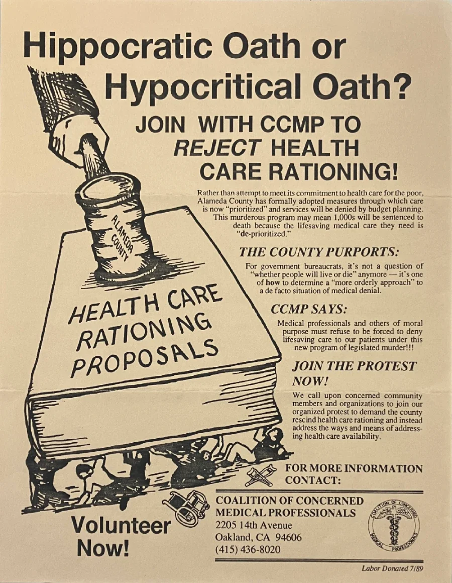Health care rationing was when the state made a list of priorities on what procedures they would cover until they ran out of the allotted money for the year. The list being proposed by government bodies made clear that the prioritization was not based upon what was most important to maintain life for the population, but on cost. CCMP initiated state-wide speaking engagement, letter writing and petition campaigns, phone calls, outreach on the streets, arm’s-length discussions in doctors’ offices, leafletting in front of hospitals and going to the offices of state legislators to organize opposition to these bills and was able to stop it first at the county and then state level.