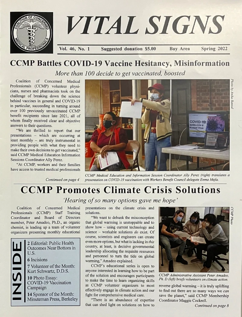 During the COVID-19 pandemic, not only did CCMP never shut down our operations for a single day, but CCMP volunteer organizers went on the offensive, conducting phoning campaigns to reach out to past benefit recipients to find out how they were doing, ask if they or their family members had any COVID symptoms, and to offer assistance with access to COVID testing, medical treatment, advocacy to secure resources to enable one to quarantine if needed and, once available, COVID vaccinations. CCMP volunteers and member physicians phoned and went on door-to-door canvasses to reach those most in need of intervention to prevent onset of serious complications, and to prevent avoidable deaths. CCMP conducted a series of Medical Education & Information Sessions to inform the community about COVID and vaccines. CCMP also launched a call-in and letter writing campaign to demand the Alameda County Board of Supervisors deal with the ramifications of COVID-19 on low-paid workers. This included a stipend for low-income workers who did not qualify for unemployment benefits due to federal labor laws. As a result, the county announced a $22 million stipend program. CCMP volunteers then did case-by-case advocacy to ensure those who qualified got access to the funds.