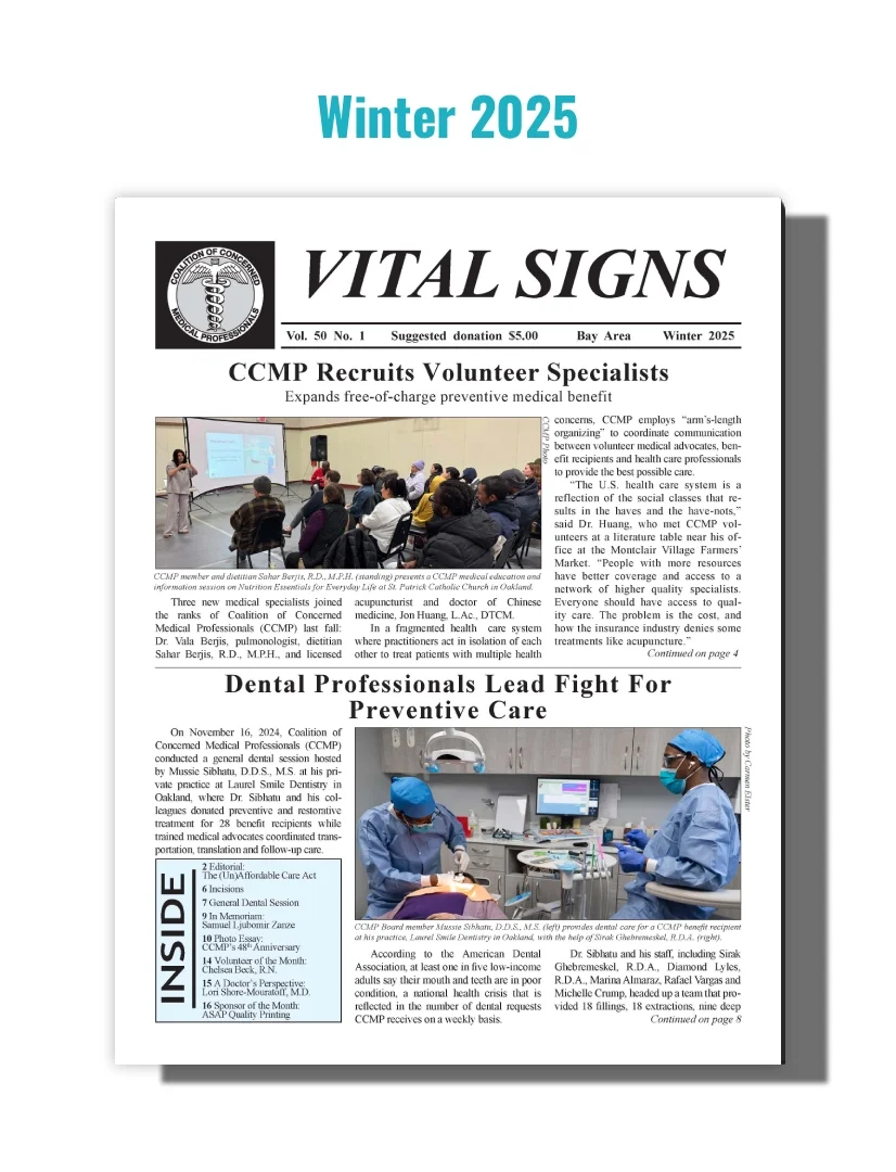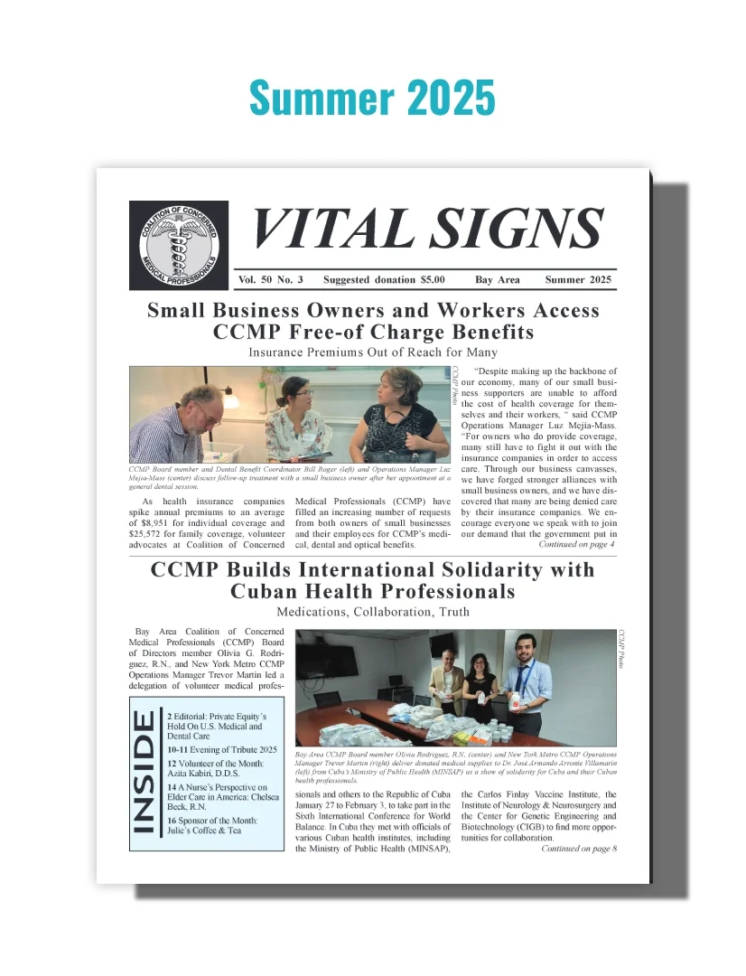 Vital Signs is published to tell the real story of what is going on in health care in the community and what Coalition of Concerned Medical Professionals is doing about it.